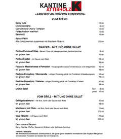 Freitag bei live Events gibt es eine spezielle Speisekarte. Für Fragen dazu bitte die Bar kontaktieren.