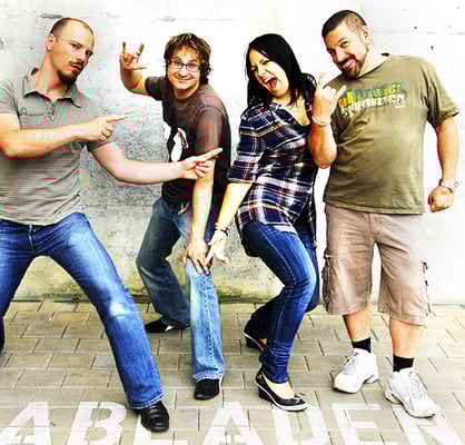 Auf dem Parkplatz hinter dem Mimusigstudio zeigten die vier Musiker, wer am besten am Boden liegen und am verprügeltsten dreinschauen kann. Zum Glück wird das Blut auf der CD am Bildschirm und mit Hilfe von Adobe Photoshop erstellt – und nicht durch Faustschläge provoziert. – Spontan macht die Band noch Gruppenfotos, die locker in den Kasten kamen.